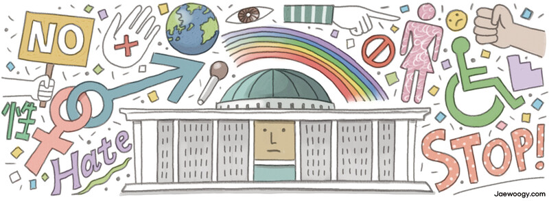 유명한 법철학자 하트는‘법이란 규칙의 체계’라고 하였다. 우리는 오랜 세월동안 무너진 규칙을 정의라는 착각 속에서 살아왔다. 잘못은 고치고 틀린 것은 바로잡아야 한다. 그런데 틀린 것, 차별에서 얻은 이익을 정의라고 우기며 ‘불의’를 ‘정의’라고 고집을 부리는 사람들이 있다. 차별금지법을 만들자는데 반대하는 사람들이 그렇다. 이해관계로 혹은 가치관의 차이로 발생하는 갈등을 바로 잡는 것이 원칙이요 법이다. 우리헌법은 ‘모든 국민은 인간다운 생활을 할 권리’를 누리게 하기 위해 ‘여자의 복지와 권익의 향상’, ‘노인과 청소년의 복지향상’, ‘신체장애자 및 질병ㆍ노령 기타의 사유로 생활능력이 없는 국민’의 권익향상과 국가가 보호해야할 의무가 있다고 규정(헌법 제 34조)하고 있다, 차별금지법을 반대하는 사람들은 왜 헌법을 부정하는가?