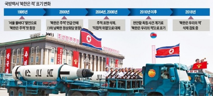 대한민국 정부 수립 직전인 1947년 서울에서 발표돼 분단과 함께 교과서에 실렸던 노래 ‘우리의 소원은 통일’이... 조선에서 ‘우리의 소원은 통일’이 2016년 금지곡으로 선포되었다고 한다. 그런가 하면 대한민국에서는 조선의 좋은 점만 말해도 ‘이적찬양고무죄로’ 처벌할 수 있는 국가보안법을 만들어 나라의 주인인 국민들이 남북의 통일방안이 무엇인지도 잘 모른다. 윤석열 정부 첫 국방백서에서 “북한 정권과 북한군은 우리의 적”이란 표현이 6년 만에 부활했다. 국방부는 북한 위협의 실체와 엄중함을 명확히 인식할 수 있도록 기술한 <2022 국방백서>에 “북한 주적” 이라고 표현했다.