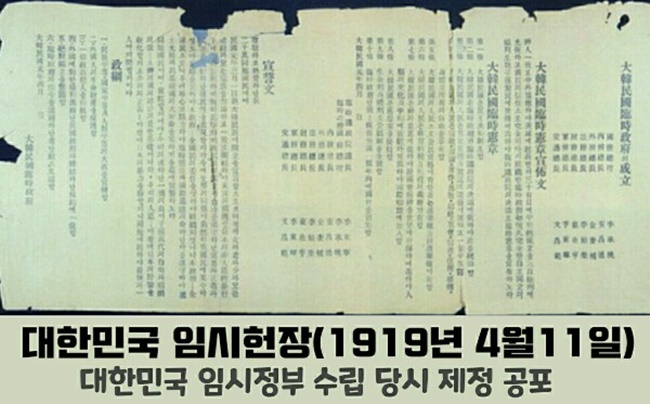 1919년 4월 11일은 반만년 역사에서 처음으로 잃었던 대한제국이 대한민국(民國)이라는 국호로 건국되는 감동의 날입니다. 우리헌법 전문은 “유구한 역사와 전통에 빛나는 우리 대한국민은 3·1운동으로 건립된 대한민국임시정부의 법통과 불의에 항거한 4·19민주이념을 계승하고...” 이렇게 시작합니다. 친일세력들은 미군정과 이승만이 합세해 상해임시정부를 인정하지도 않은채 수립된 정부. 1948년 7월 17일 제헌헌법에 의거 1948년 8월15일 반쪽의 대한민국이 수립되지만 친일잔재청산도 없이 건국 102년을 맞았습니다. 제대로된 친일잔재청산과 한반도 통일은 언제쯤 가능할까요?