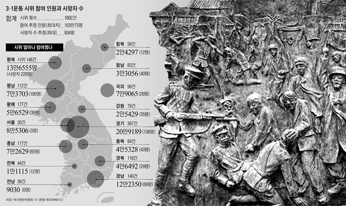 1919년 3월 1일. 106만여 여명의 국민들이 전국 방방곡곡에서 대한독립 만세를 부르다 934명이 왜놈들의 총에 맞아 사망하고, 구속된 국민들의 수만 해도 무려 4만 7천여 명이나 되었습니다. 1910년 을사늑약으로 나라를 빼앗긴 우리국민들은 1919년 윌슨 미국대통령의 민족자결주의. 1919년 2월 8일 일본 도쿄에서 조선 유학생들이 조선 독립선언. 그리고 3·1 운동을 계기로 다음 달인 1919년 4월 11일 중국 상해에서 대한민국 임시헌장을 발표하고 대한민국 임시 정부가 탄생합니다.