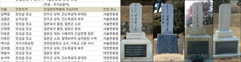 "내가 죽거든 친일파들이 묻혀 있는 국립묘지가 아니라 동지들이 묻혀 있는 효창공원에 묻어 달라"라고 한 대한민국 임시정부의 마지막 비서장 조경한지사의 유언이다. 조경환지사는 왜 국립묘지에 묻지 말라고 유언했을까? 현재 서울동작구 국립현충원에는 김백일을 비롯해 김홍준, 신응균, 신태영, 이응준, 이종찬, 백낙준, 김석범, 백홍석, 송석하, 신현준 등 친일반민족행위 진상규명위원회가 공식 결정한 친일파 11명이 안장되어 있고, 김백일처럼 국립묘지인 현충원에 안장된 친일파는 63명의 친일인사가 서울현충원과 대전현충원에 묻혀 있다.