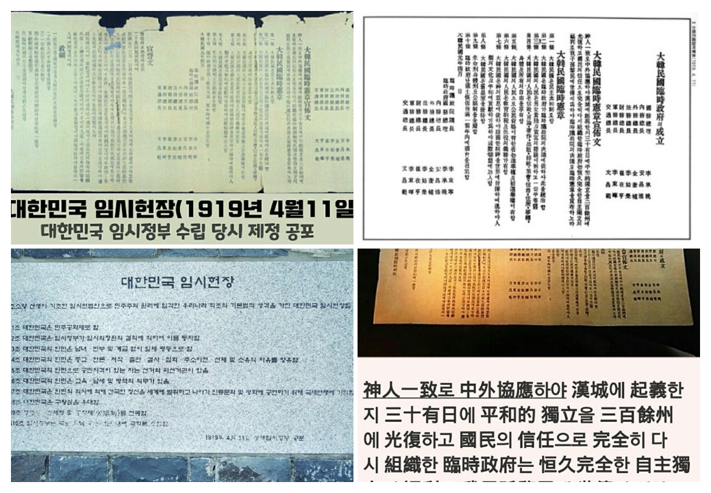 대한민국(大韓民國)은 1897년 10월 12일부터 1910년 8월 29일까지 존재했던 대한제국(大韓帝國)을 계승한 나라다. 1919년 4월 11일 상해임시정부는 임시헌장 선서문에서 ”존경하고 경애하는 아 이천만 동포 국민이여, 민국 원년 삼월일일 아 대한민족이...“라고 했다. 임시헌장 제 1조는 ‘대한민국은 민주공화제로 함’으로 시작해 제 10조의 ”임시정부는 국토회복 후 만일개년내에 국회를 소집함“이라는 명시했다. 상해임시정부 법통을 계승한 대한민국 ‘임시정부법령 제1호’로 대한민국 탄생을 명시하고 있다.