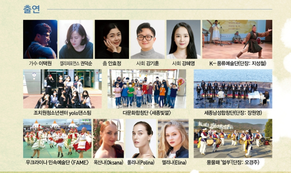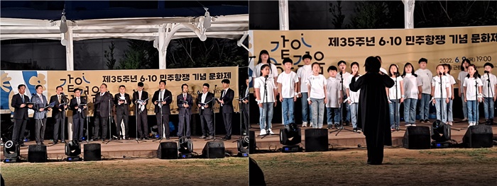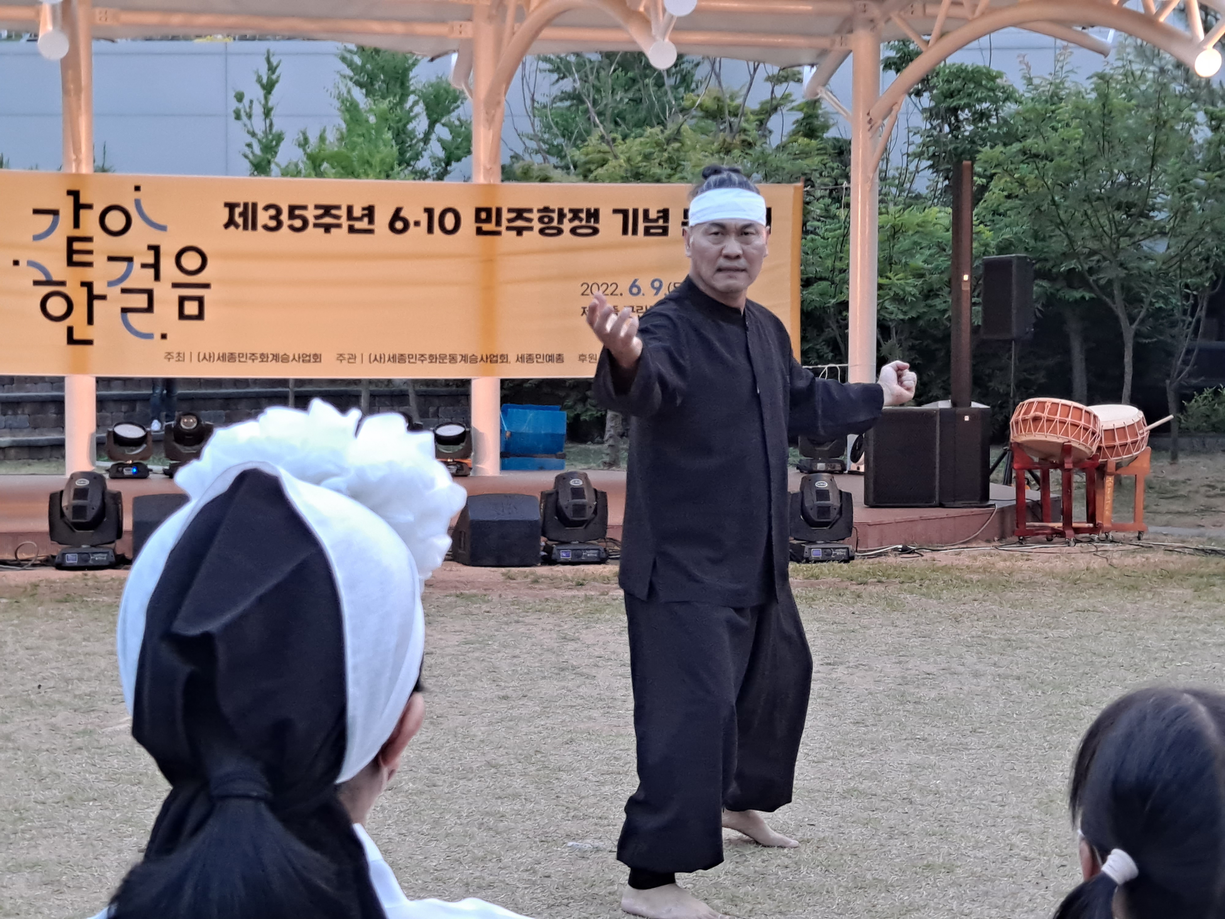 이어서 6,10민주인사 김용택, 정종미의 6,10세대공감토크 세종빛깔 다문화합창단의 <고향, 아리랑>합창, 그리고 조치원청소녀년센터Yolo 댄스팀의 <Power, Foever Young>, 우크라이나 민속 예술단 FAME의 평화의 춤과 노래, 세종 예총 풍물굿위원회 판놀은<강강수월래> 그리고 다함께 부르는 민중의 노래<임을 위한 행진곡> 순으로 진행됐다.