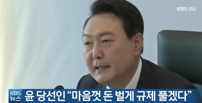 윤 대통령은 당선 후 전북 전주의 국민연금공단을 방문해 “우리 국민이든 기업이든, 외국인이든 해외 기업이든 한국에서 마음껏 돈 벌 수 있게 해주겠다”며 “제 임기 중 국민을 잘 먹고 살게 하는 목표밖에 없다”면서 “임기 중에 풀 수 있는 규제를 다 푸는 것이 정책 방향”이라고 했다. 전남 영암의 대불산업단지를 찾아 “제가 생각하는 정부 역할은 기업인들을 방해하는 걸림돌과 규제를 제거하는 것”이라고도 했다. 윤대통령이 말하는 국민은 기업인가 서민인가?