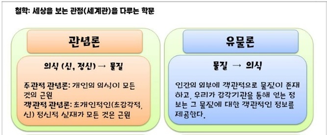 철학이란 소크라테스나 아리스토텔레스가 남긴 말 몇 마디를 외우는게 아니다. 철학은 세계에 대한 견해다. 철학의 기본문제는 '물질과 의식이 어떤 관계에 있는가' 하는 것이다. 물질이 일차적이고 시원적이라고 보면 유물론이고 의식, 정신이 일차적이고 시원적이라고 보면 관념론이다. 유물철학은 물질이 정신보다 먼저 있어서 물질이 정신을 탄생시켰다고 보고 관념철학은 정신이 물질보다 먼저 있었고 물질은 정신에서 나왔다고 주장한다.