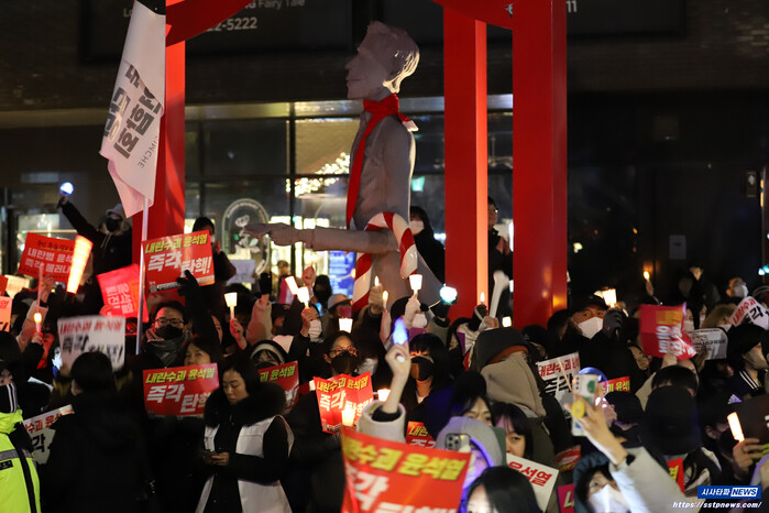 윤석열은 계엄령을 선포한 이유가 “국정은 마비되고 국민들의 한숨은 늘어나고 있기 때문”이라고 했지만 국정이 마비되고 국민들의 한숨이 늘어나게 만든 장본인은 손바닥에 왕(王)자를 쓰고 나타났던 윤석열이 만든 결과다. 국민의 소리는 무시하고 헌정사상 집권 2년 반 만에 25번이나 국회가 만든 법안에 거부권을 행사한 불통 왕 내란 수괴는 당장 직무를 정직시키고 구속·수사해야 한다.