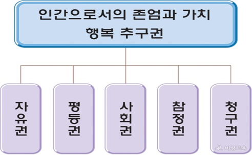 우리 헌법은 인간의 존엄과 가치 및 행복 추구권을 포괄적 기본권으로 규정하고, 이를 구체적으로 실현할 수 있도록 자유권, 평등권, 사회권, 참정권, 청구권 등을 보장하고 있다.