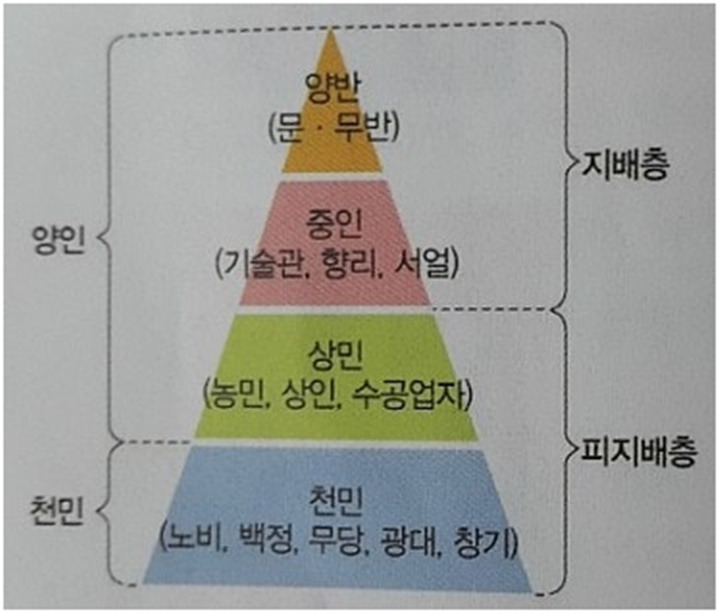 삼국시대는 귀족은 전체인구의 10%정도였다. 평민 80%, 노비 10%였다. 고려시대는 귀족 10%, 중류층 10%, 양민 70% 노비 10%였다. 조선 초기 양반과 중인이 각각 10%, 평민 40% 노비가 40%였다. 17세기를 분기점으로 점차 노비 수가 늘어났다가 이후 노비가 줄고 양반이 늘어나게 된다. 그러다 19세기 들어서면서 국민대다수가 양반이 되는 기현상이 나타나게 된다. 조선시대 초기 전체인구의 30%정도였던 노비가 이후로 점차 증가해 17세기 중에는 전체인구의 60%가 노비가 된다.