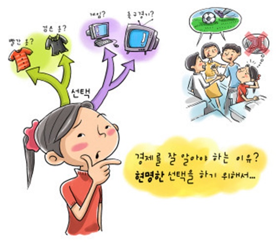 학교는 또 어떤가? 목적이야 거창하게 ‘체계적인 경제 지식과 사고력 및 가치관을 토대로 하여 소비자, 생산자로서 책임 있는 민주 시민의 구실을 수행할 수 있는 인간을 기른다’고 하면서 ‘리카도의 비교우위이론’이니 ‘효용가치’가 어떻고 그래프를 그려주고 그래프 해석을 묻거나 X축, Y축을 바꿔놓고 상승곡선이나 가르치면 졸업 후 학생들이 경제생활에 절실하게 필요한 삶의 안내서가 될까? 경제 교과서는 실제로 총론 격인 경제생활과 경제문제의 이해, 경제 주체의 역할과 의사 결정, 시장과 경제 활동, 국민 경제의 이해, 세계 시장과 한국 경제, 경제 생활과 금융… 이런 내용을 가르친다.